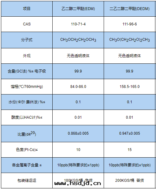 您当前(qián)的(de)位(wèi)置:首页(yè) > 電(diàn)子化(huà)學(xué)品應(yìng)用(yòng):乙二(èr)醇二(èr)甲醚是(shì)一(yī)種(zhǒng)性(xìng)能(néng)優良的(de)非(fēi)質(zhì)子极(jí)性(xìng)溶劑,除了(le)用(yòng)作(zuò)气(qì)体吸收(shōu)劑,萃取(qǔ)劑和(hé)脫漆劑外(wài),還(huán)可以(yǐ)用(yòng)于(yú)電(diàn)子化(huà)學(xué)領域:如(rú)替代(dài)水(shuǐ)作(zuò)非(fēi)水(shuǐ)溶液電(diàn)解(jiě)質(zhì)溶劑,用(yòng)于(yú)電(diàn)化(huà)學(xué)設備,充電(diàn)電(diàn)池及(jí)有(yǒu)機(jī)化(huà)合物(wù)電(diàn)解(jiě)反(fǎn)應(yìng)等。